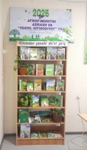 Shu munosabat bilan Muzrabot tuman axborot-kutubxona markazi o’quv zalida “Atrof- muhitni asrash va “yashil ” iqtisodiyot yili” deb nomlangan doimiy kitob rasmli ko’rgazma tashkil etildi.