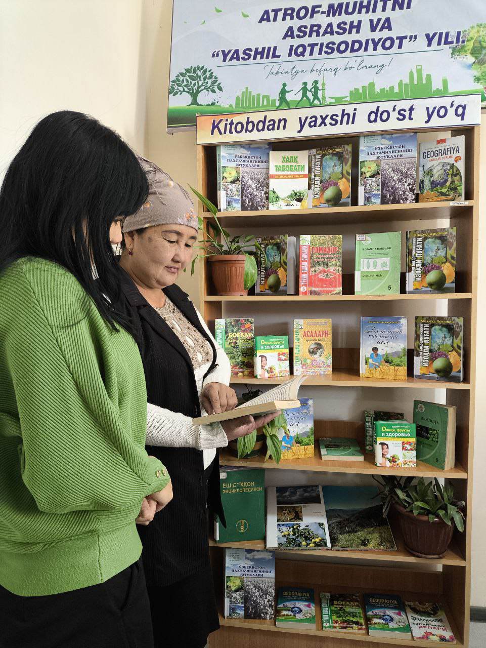 Shu munosabat bilan Muzrabot tuman axborot-kutubxona markazi o’quv zalida “Atrof- muhitni asrash va “yashil ” iqtisodiyot yili” deb nomlangan doimiy kitob rasmli ko’rgazma tashkil etildi.