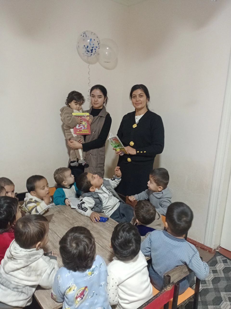 Tashrif davomida Muzrabot tuman Axborot-kutubxona markazi mutaxassisi Xamrayeva Umida ham ishtirok etib, bolalarga kitob mutolaasi, ertaklar va rivojlantiruvchi o‘yinlar orqali erta yoshdan kitobga qiziqishni oshirish, nutq va tasavvurini rivojlantirishga yo‘naltirilgan mashg‘ulotlarni tashkil etdi.