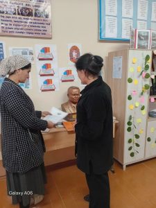 Maktab direktori T. Utayev hamda kutubxonachi N. Uraqova ishtirokida kutubxona hujjatlari ko‘rib chiqildi. Kutubxonaning toza va ozoda saqlanayotgani, fondning tartibli joylashtirilgani alohida e’tirof etildi. Shuningdek, yaqinda hokim tomonidan sovg‘a qilingan yangi kitoblar bilan ham tanishib chiqildi.